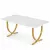 Bring modern luxury into your home with this stunning 63″ dining table, designed to make every meal feel like a special occasion. Featuring a sleek faux marble tabletop paired with eye-catching gold metal legs, this table blends sophistication with everyday function. Perfectly sized at 63″ L x 31.5″ W x 29.5″ H, it comfortably seats 4 to 6 people—ideal for family dinners, gatherings with friends, or casual breakfasts. Whether you’re revamping your dining area or adding a touch of class to your kitchen, this table is a statement piece that fits effortlessly into modern lifestyles.